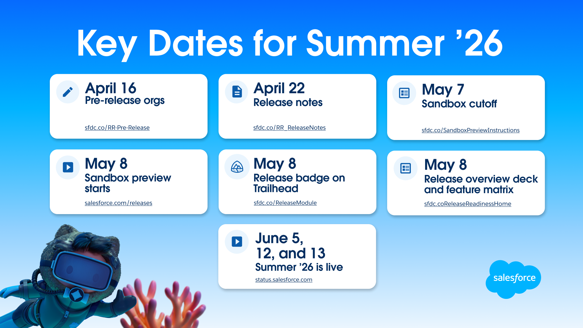 Check out the Be Release Ready page for all the resources you need to help prepare your org and users for the Summer ’26 release.